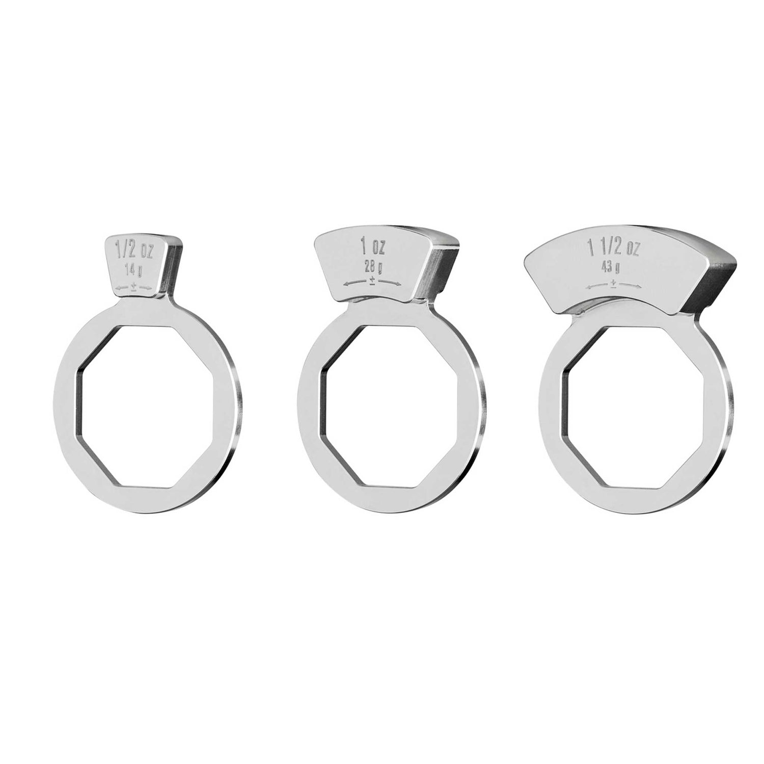 • Stainless steel balance weights (½, 1, and 1½ oz)