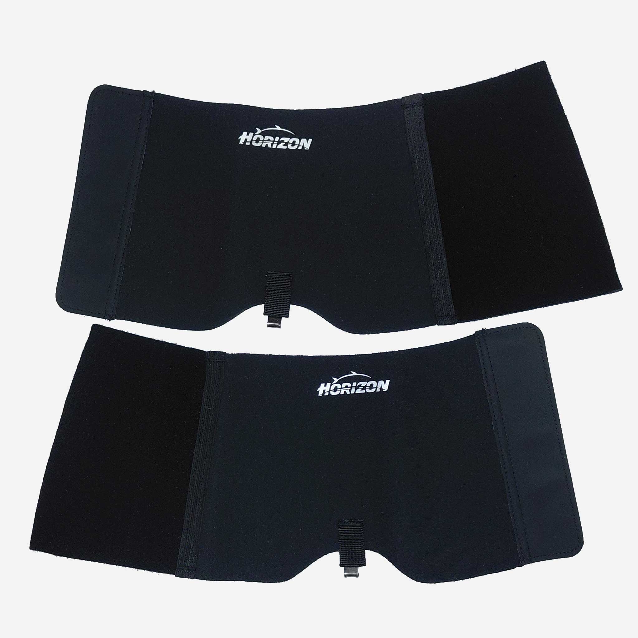 Left and right specific design. Unlike generic one-piece gravel guards, each Horizon guard is designed to wrap in a specific direction so the closure flap always faces outward — away from your opposite leg. This prevents the tag from catching or rubbing against the other boot while walking and wading, and keeps the Velcro securely sealed even in strong currents.